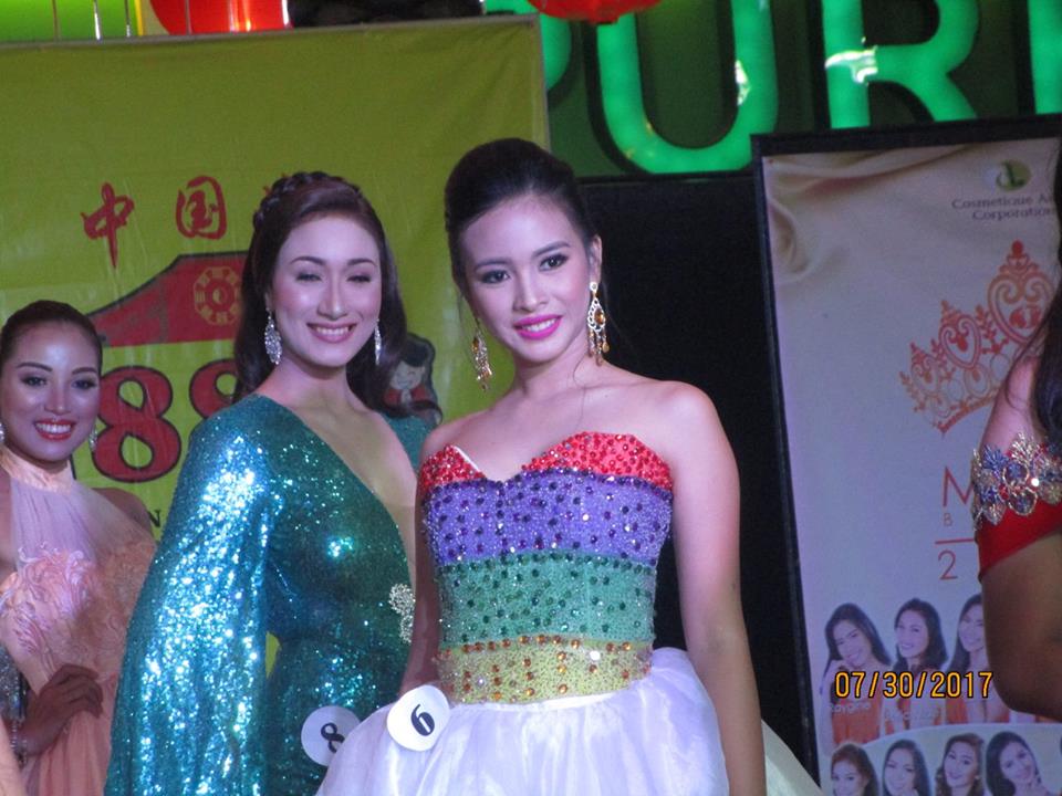 Negros Daily Bulletin (NDB) Columnist/Feature Writer James U. Sy Jr. with Contestant no. 3 Nica Arroyo of Bacolod City College (BCC) during the cocktail competition of the Search for Miss Silka Bacolod 2017 last July 30, 2017 at the 888 Premiere Mall (NDB photo).